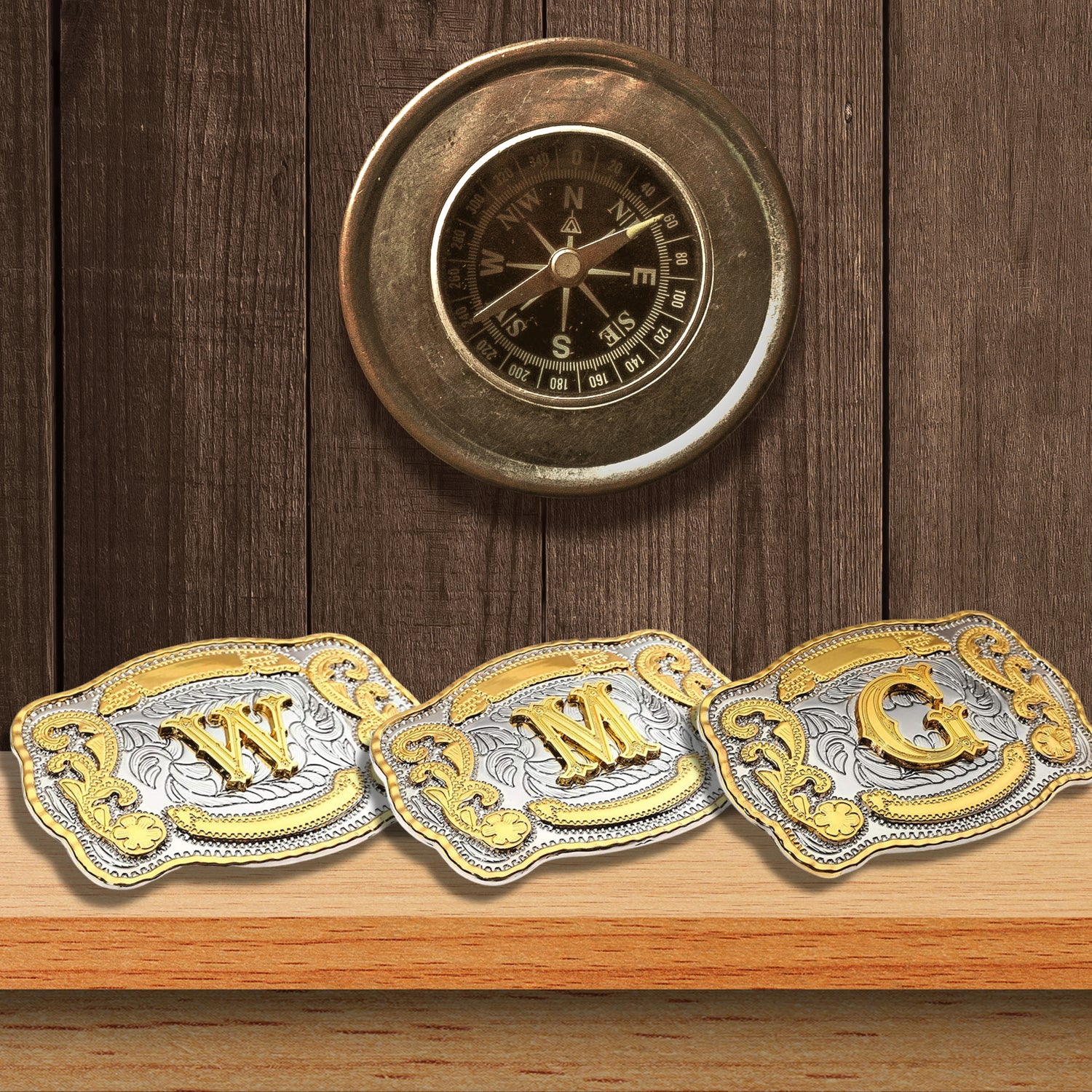 Initial Letter "M" Cowboy Rodeo Western Large Gold Tone Belt Buckle
